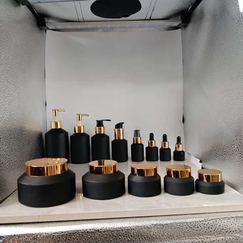 काला फोस्टेड तेल, सीरम, लोशन बोतल क्रीम जार